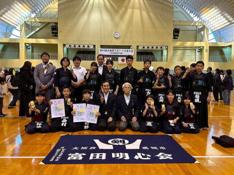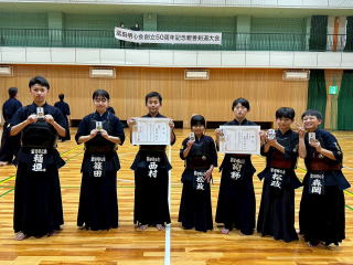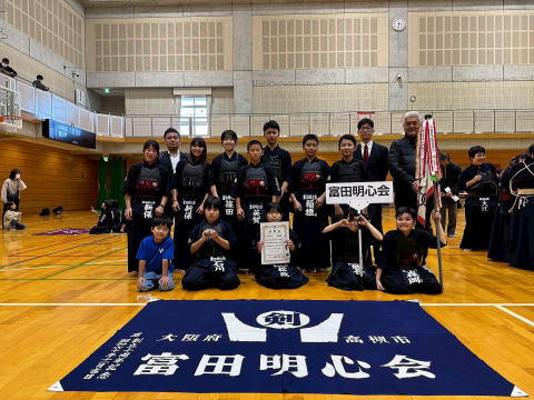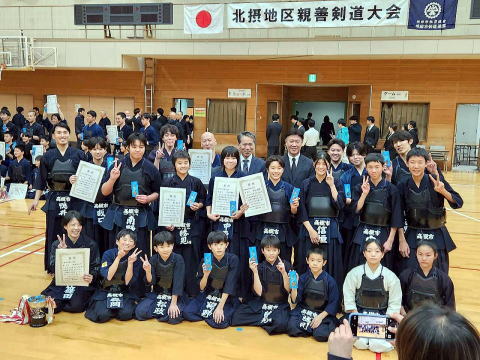 小学生団体の部 優勝 先)森岡(昴) 次)松政(美) 中)松政(結) 副)森岡(飛) 大)狩野